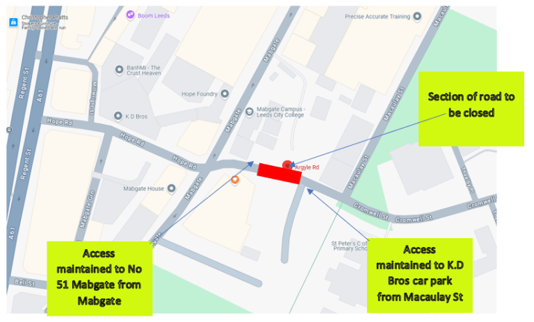As part of a programme of essential maintenance for the Leeds PIPES heat network, a section of Argyle Road will be closed starting on Monday 27th October.